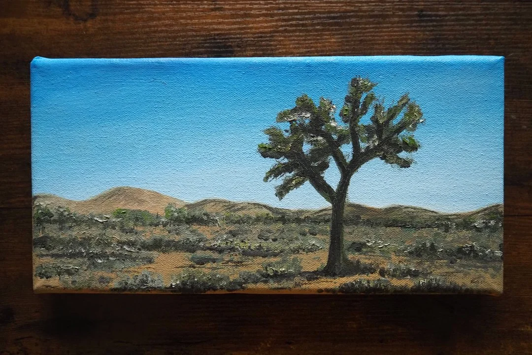 I painted this from a photo I took while visiting Joshua Tree National Park. I loved how this one single Joshua Tree stood out in this amazing desert landscape.